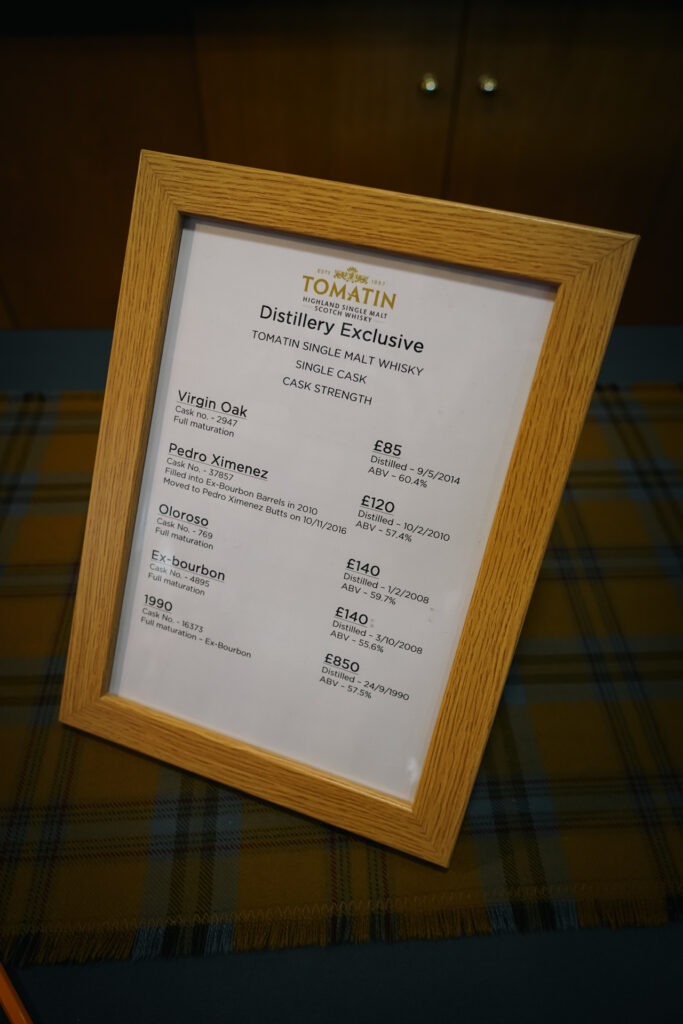 Tomatin biedt verschillende tours en proeverijen aan. Deze tours variëren in prijs en het aanbod qua proeverij. Wij hebben zelf de Taste of Tomatin tour gedaan en deze kostte 30 pond per persoon. Wat ons betreft een echte aanrader, aangezien je voor een relatief lage prijs ten opzichte van andere distilleerderijen veel te proeven krijgt.