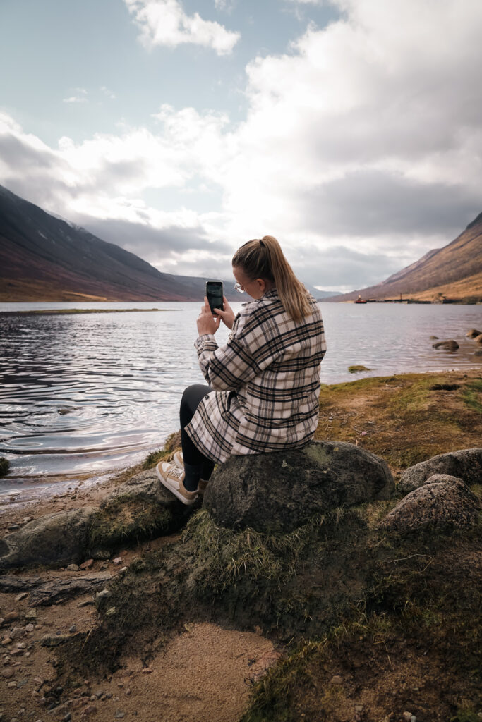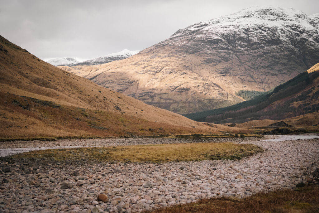 Er zijn meerdere plekken waar je even kunt stoppen om foto’s te maken of gewoon te kijken. Vooral het eerste deel van Glen Etive heeft mooi uitzicht op Buachaille Etive Mor en de vallei zelf. Aan het einde van de route kom je uit bij Loch Etive, een groot meer van meer dan 30 kilometer lang dat uitmondt in de zee. Hier kun je parkeren en een wandeling maken langs het water. Wij hebben hier in februari genoten van een kop koffie in het zonnetje. Heerlijk!