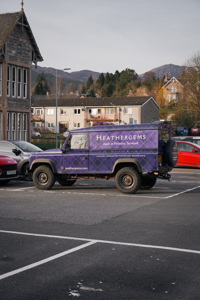 Pitlochry heeft een levendige hoofdstraat, met een mix van lokale winkels, cafés en restaurants. Tijdens het rondlopen door het centrum zie je winkeltjes die het verkennen waard zijn. Een daarvan is Heather Gems, een winkel met sieraden gemaakt van echte Schotse heide. Het productieproces is bijzonder: de heide wordt geperst en verwerkt tot kleurrijke sieraden in allerlei tinten paars en groen. Je kunt er ook zien hoe de sieraden worden gemaakt. Een leuke stop, zeker als je op zoek bent naar een authentiek Schots aandenken dat wat persoonlijker is dan de standaard koelkast magneet.