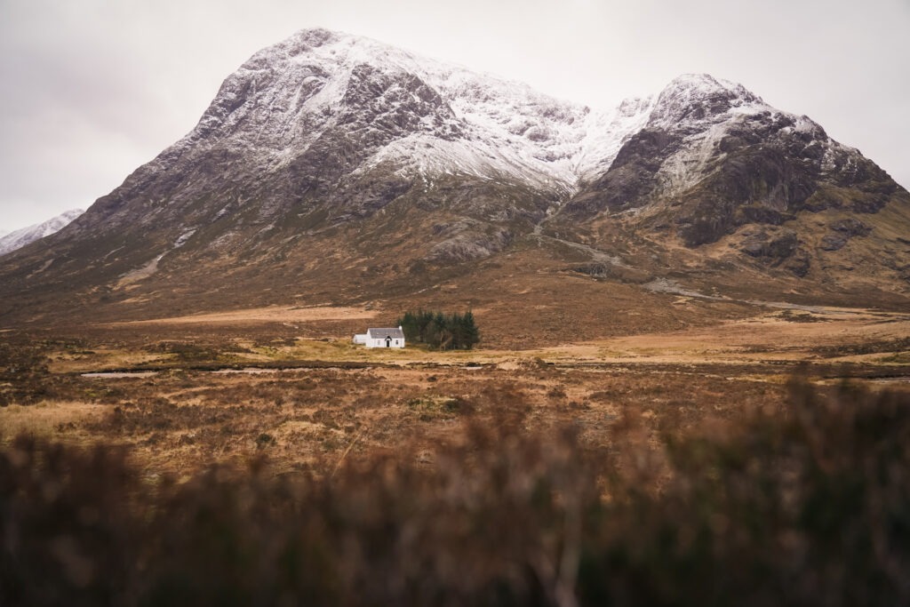 Aan het begin van de vallei, net na het Kingshouse onder de voet van de Buachaille Etive Mór, staat misschien wel het meest gefotografeerde huis van Schotland. Deze setting levert altijd een bijzondere plaat op: een huis in de middle of nowhere. Zou jij er wel willen wonen?