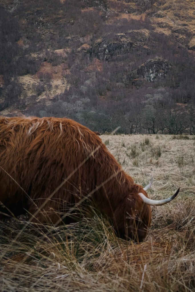 Je zou denken dat je overal Schotse Hooglanders ziet in Schotland. Maar niets is minder waar. Ze worden niet meer gehouden voor het vlees, maar meer voor natuurbehoud (en voor de toeristen). Ze leveren dus niet zoveel geld meer op voor de boeren. Toch zijn er een aantal plekken waar de kans groot is dat je ze ziet. Je komt ze regelmatig tegen op Isle of Skye, Applecros, Glencoe, Plockton en Loch Ness. De foto’s op deze pagina zijn gemaakt in de buurt van Glen Nevis.