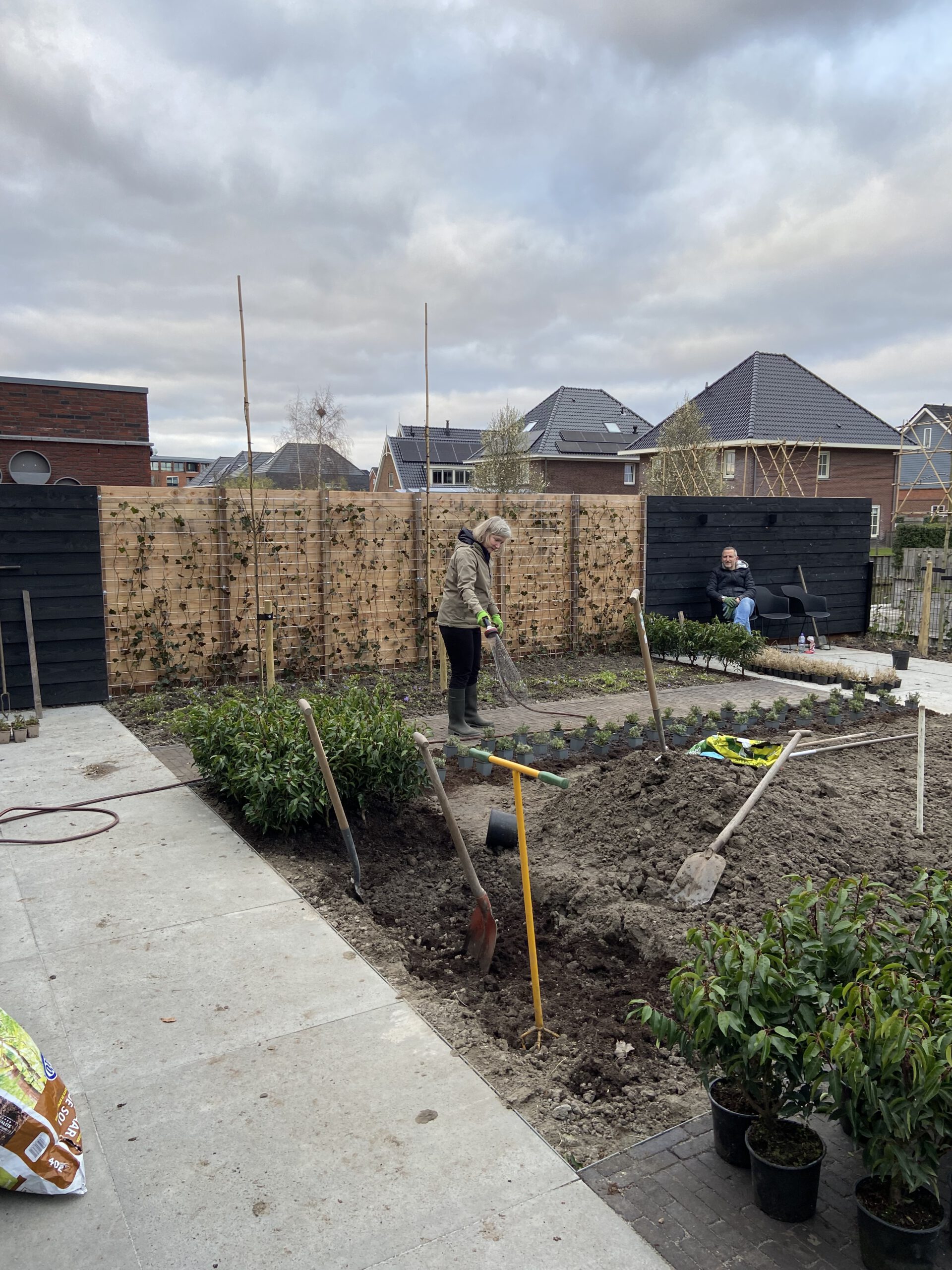 Ook hebben papa en mama de handen flink uit de mouwen gestoken op de Bronstijd. Jorrit vond het wel een goed idee om in één weekend meer dan 600 planten in de grond te zetten…