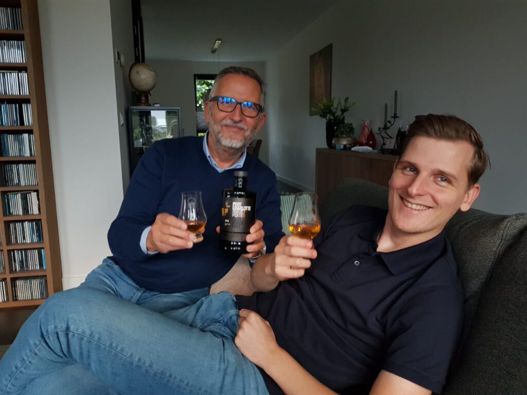 En elke fles die papa koopt wordt opengetrokken, dus Hidde mocht de maandag erna genieten van een glas Port Charlotte.