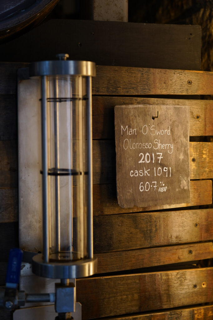 Na de uitleg over het productieproces nam Alister ons mee naar een warehouse. Hier werd het tweede glas ingeschonken en vertelde hier iets over de vaten, maar al snel kwam hun warehouse manager een kijkje nemen. Hij had ons eerder al foto’s zien maken en wilde ons graag meenemen in het warehouse om een aantal bijzondere vaten en meer van het warehouse te laten zien. Dit soort dingen maken een tour altijd extra bijzonder.