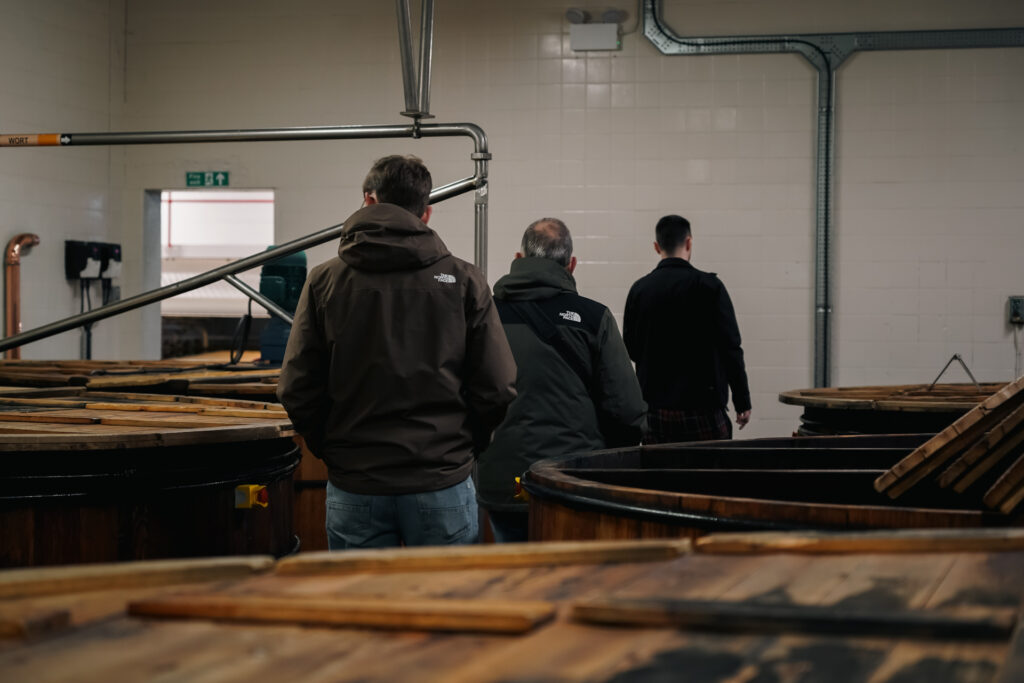 We hadden vooraf gekozen voor de standaard tour en werden door Devin, onze enthousiaste tourguide, opgewacht en meegenomen naar de eerste ruimte. Hier vertelde hij wat over de geschiedenis van de distilleerderij om ons daarna mee te nemen naar de volgende ruimte. We werden meegenomen naar een prachtige still room waar de koperen ketels in hun volle glorie stonden. Het geluk was aan onze zijde, omdat de rechter ketel net nieuw geplaatst was en de still room weer compleet was.