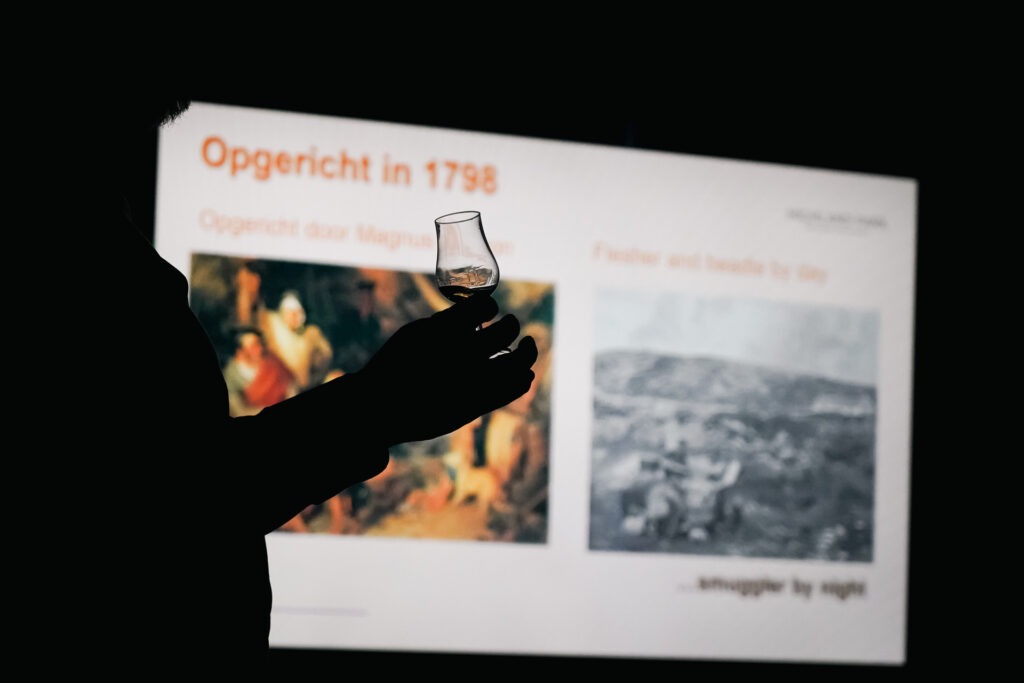 Om stipt 20:00 uur startte de proeverij met een Highland Park 12 years old om de smaakpapillen warm te draaien. Aan de hand van een gelikte presentatie met prachtige foto’s en video’s, werden de deelnemers in 2,5 uur ondergedompeld in de wereld van Highland Park. Aangezien de groep bestond uit deelnemers met veel én weinig ervaring, kon Tony al zijn kennis over het gehele productieproces van whisky delen.
