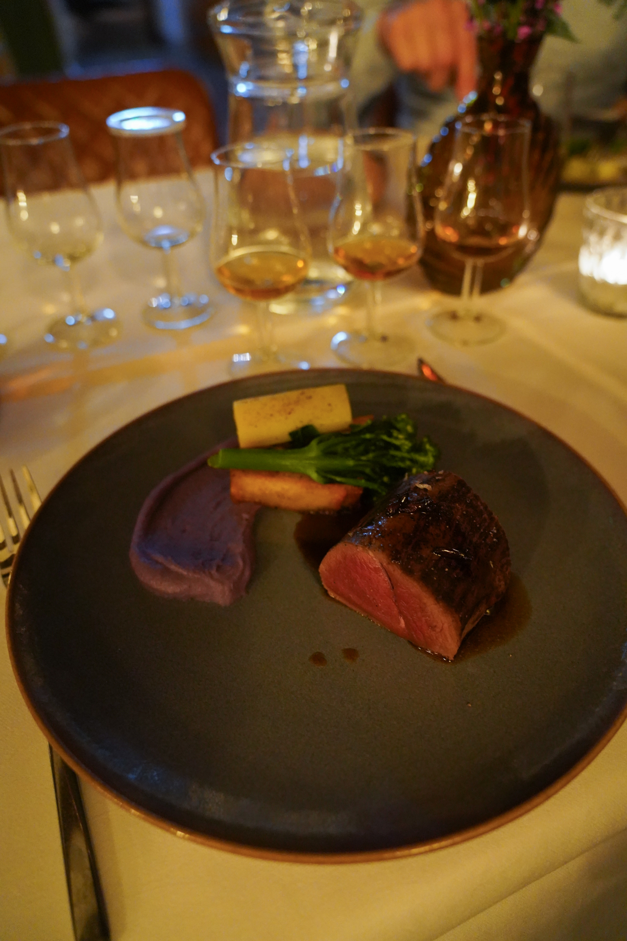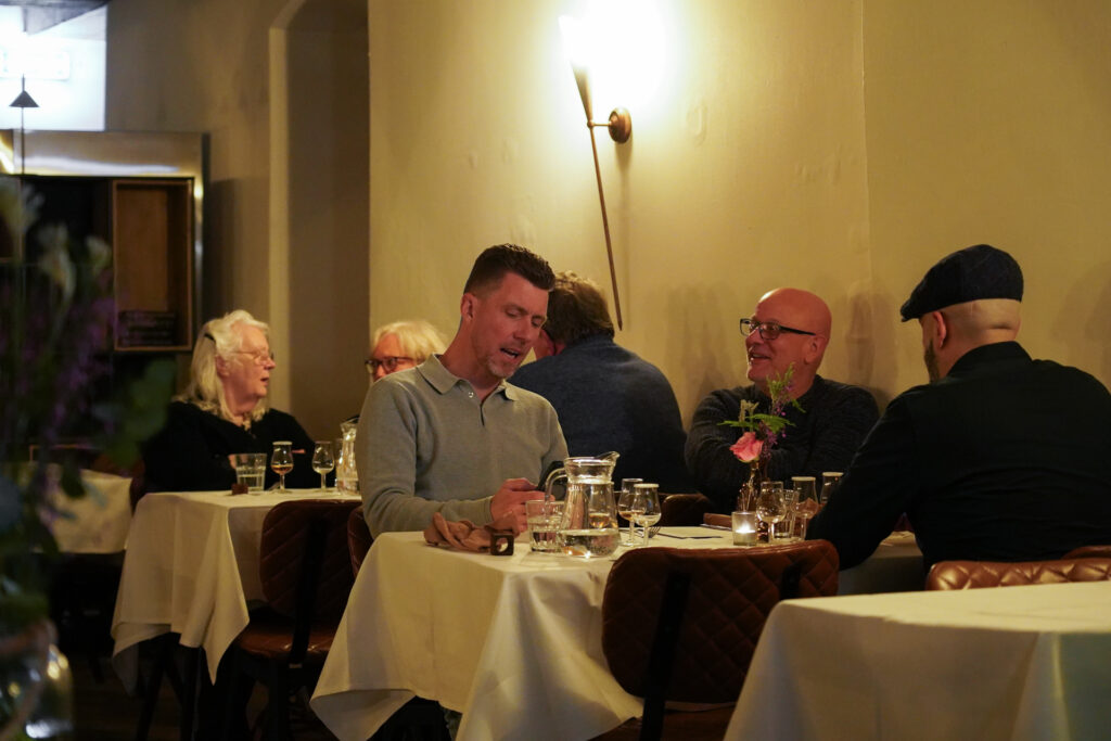 Het menu en de whisky line-up was zorgvuldig samengesteld door Yoël en restaurant J&T Mos. Het viergangendiner werd gecomplementeerd door vijf whisky’s. Vijf whisky’s en vier gangen? Dat klopt. Bij het dessert werden we getrakteerd op twee bijzondere Highland Park whisky’s: een 25YO én 30YO. Echt uniek om deze twee whisky’s in het glas te hebben. Bij elke gang werden we meegenomen in het smaakprofiel van de whisky en waarom het een goede combinatie met het gerecht was. Er ontstond een hele ontspannen sfeer in het kasteel, met name door de manier hoe Yoël met de gasten om ging. Geen grote verhalen of show, maar met persoonlijke aandacht per tafel. Leuk om het ook zo een keer mee te maken.